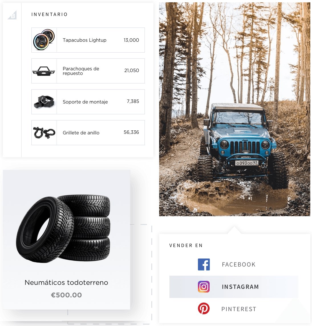 Personaliza tu catálogo y tu página de productos para que los clientes puedan crear sus propios paquetes de piezas de automóviles.